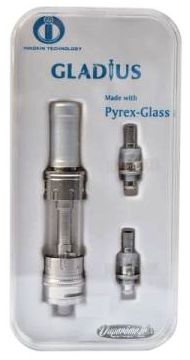 Le Gladius est un clearomiseur BDC (bottom dual coil), en acier inoxydable et en verre Pyrex, avec un système de contrôle du débit d’air (double entrée d’air / double airflow)