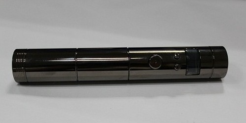 - Tube en plastique transparent, avec connecteur pour le Tip. Une bague métallique est sertie sur le plastique pour renforcer ce connecteur. Le tube est gradué jusqu’à 2.4 ml. La base métallique est sertie dans le tube, pour former le réservoir. Elle comporte le support de la « tête » et un connecteur de type eGo pour y visser une batterie.